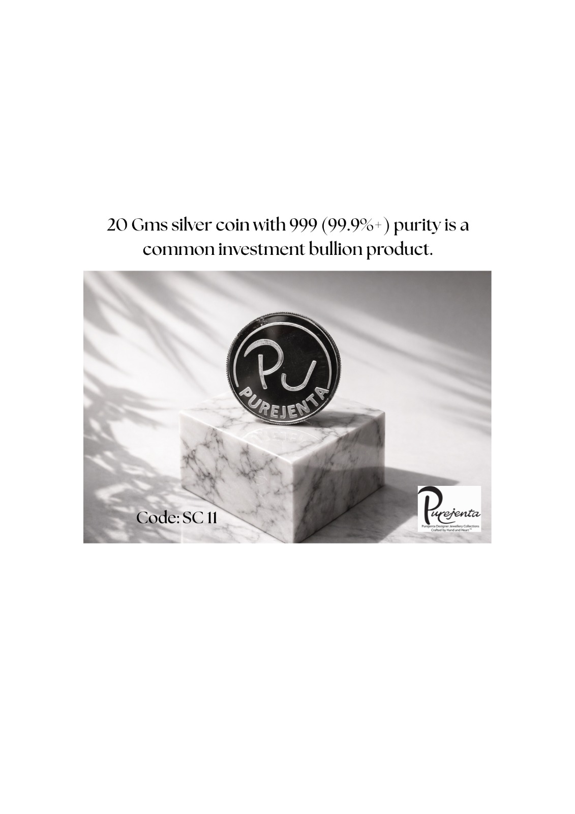 Purejenta Jewellery Plain Silver Coin – 20 Gram